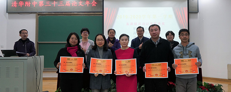 首先,校领导为获得本届论文年会最佳组织奖和论文一等奖的团体和个人颁发了证书并合影留念。之后,校领导又为获得2019-2020学年度第一学期青年教师优秀教案的教师和优秀教学指导教师、备课组活动记录优秀奖的获奖代表颁发了证书并合影留念。