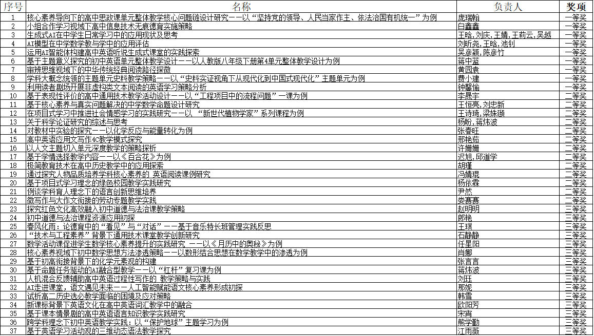 获奖论文有着显著特点:均扎根课堂教学一线,以真实教育痛点为研究起点,通过数据追踪、案例分析形成可落地的解决方案,实现“以研促教”;同时紧扣新课程改革与AI技术发展趋势,将拔尖创新人才培养等时代议题融入研究,凸显“时代为志育人为本行动为要”的bg真人娱乐理念。