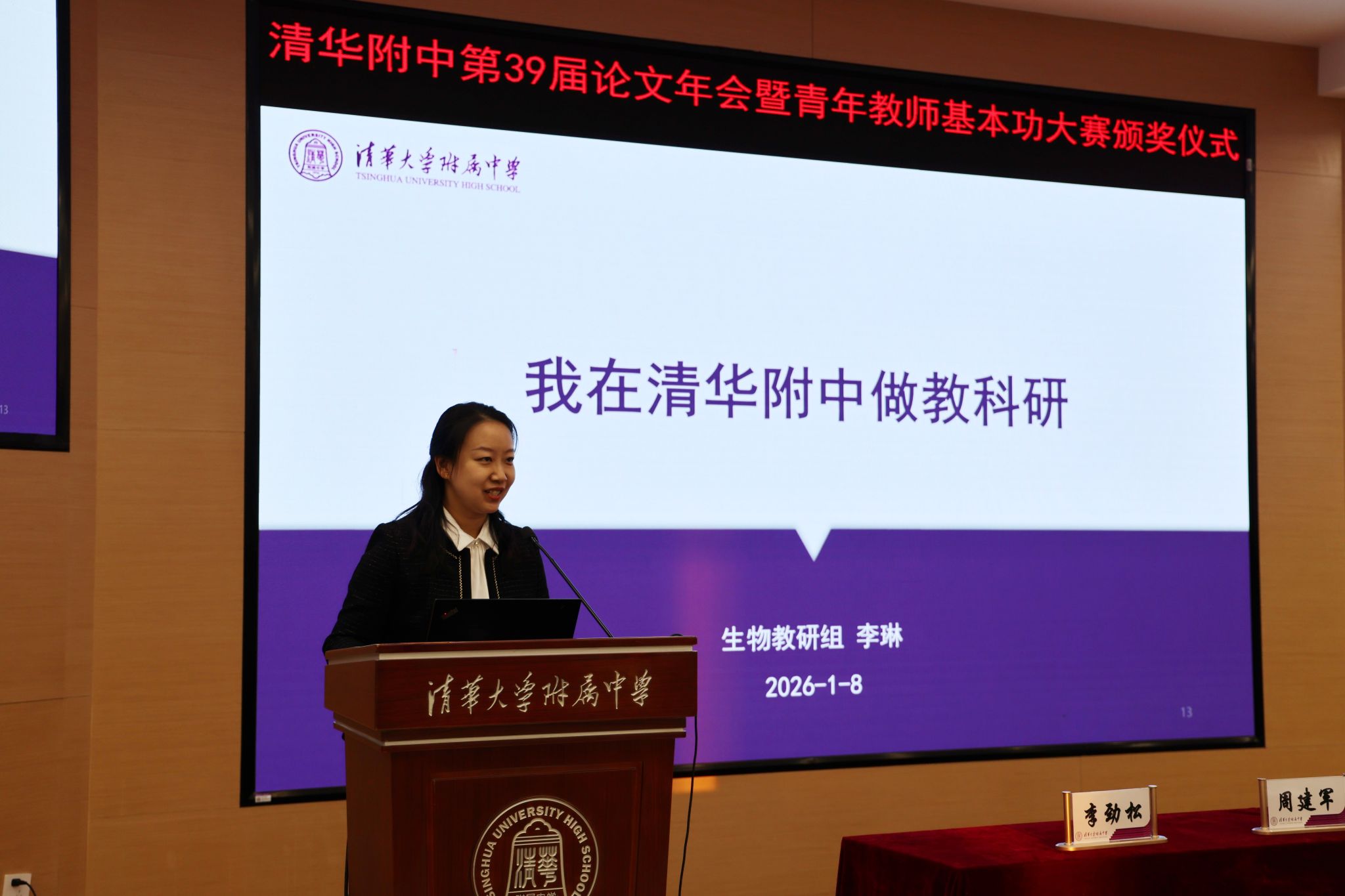 会上,首先播放了学校教科研工作回顾视频。视频由bg真人娱乐数智人“大白”与“小清”联袂主持,系统回溯了过去一年学校教科研工作的丰硕成果,生动展现了全体教师的卓越风采。从扎实推进的各级各类课题研究,到扎根课堂的深度实践与反思;从跨学科融合的创新探索,到AI技术赋能教学的前沿尝试,每一项成果都生动诠释了附中教师“教以潜心,研以致远”的科研追求与专业底色。