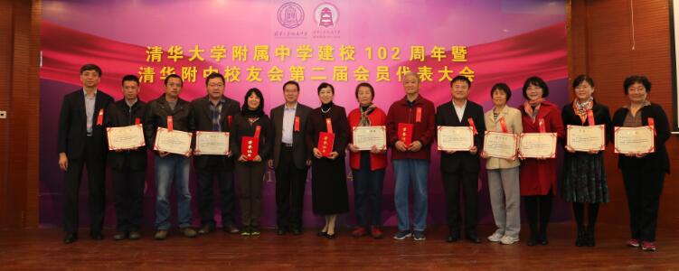 清华大学党委常委、工会主席王岩为获奖校友颁奖