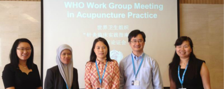 2015年10月27日,赵宏(中)在广州参加世界卫生组织关于“针灸操作规范”的讨论会