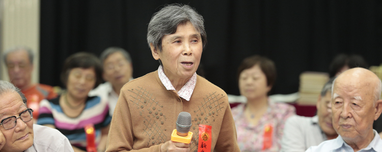 郑祥身校友代表所在班级深情朗诵了一首怀念万校长的长诗,字字都饱含对万校长的崇敬爱戴之情。他说,我在附中度过了六年的时光,见证了附中的辉煌,往昔的回忆犹在眼前。