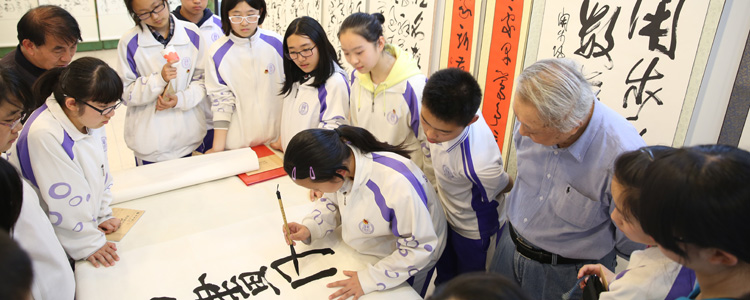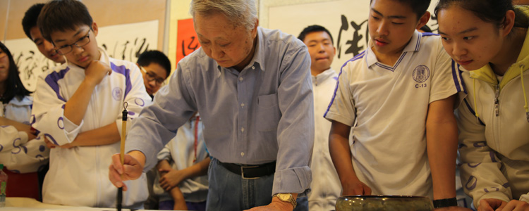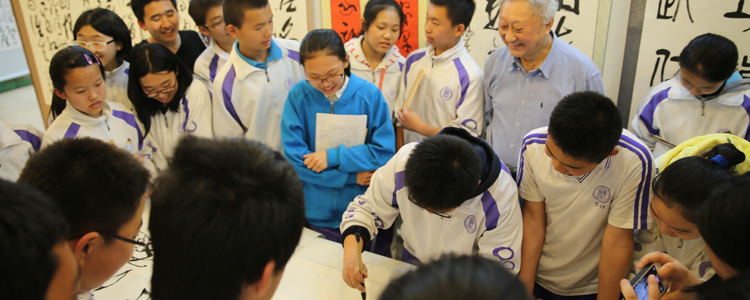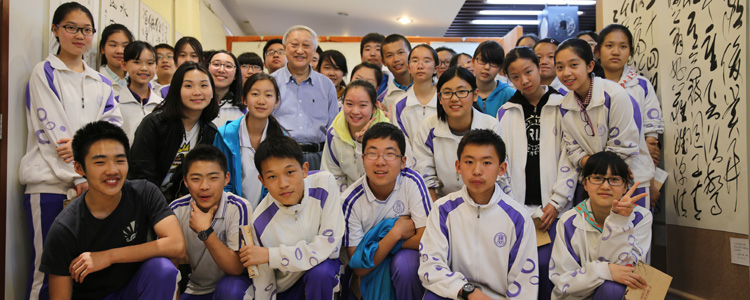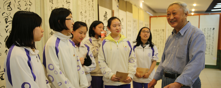 4月21日下午,bg真人娱乐组织部分学生参观了正在清华大学老年学研究中心(熊知行楼)举办的韩家鳌书法作品展。此次观展活动得到了学生发展中心主任郎艳和美术组教师吴雅蒂的大力支持。bg真人娱乐前校长韩家鳌在百年校庆办公室主任孙大鹏的陪同下来到现场,与学生们进行了饶有趣味的互动。现场气氛十分热烈,在交流之中,同学们上了一堂生动活泼的书法文化课!