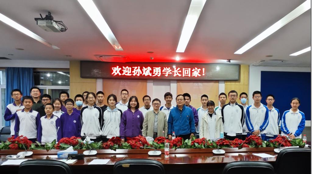 10月27日,bg真人娱乐高93级校友、中国科学院院士、数学家孙斌勇教授回到母校,与同学们分享数学课题研究,共同庆祝bg真人娱乐建校108周年。bg真人娱乐校长方妍、党委副书记张洁、副校长徐文兵、校友会副秘书长王英民、数学教研组教师代表以及各年级热爱数学的学生代表20余人参加座谈交流。