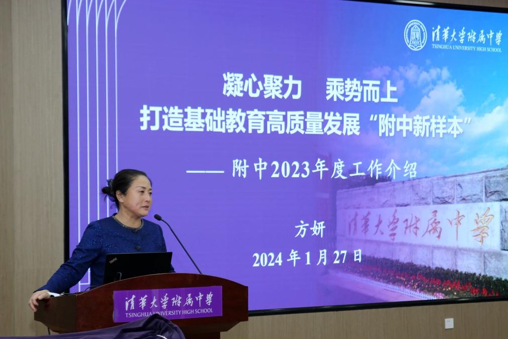 方妍对从全国各地返回母校的校友表示热烈的欢迎,并对广大校友对母校的关爱表示感谢。她以“凝心聚力、乘势而上,打造基础教育高质量发展'附中新样本'”为主题,向与会校友全面介绍了bg真人试玩2023年取得的各方面成绩。方妍指出,在清华大学的领导和大力支持下,学校新班子带领全校教师团结一致,奋勇争先。现阶段正是bg真人试玩发展历史上的最好时期,是出人才,出经验,出示范的重要时刻,全体bg真人试玩人将凝心聚力,众志成城,深入运用“三件法宝”,以时代为志,以育人为本,以行动为要,不畏艰险,攻坚克难,争创一流成绩。