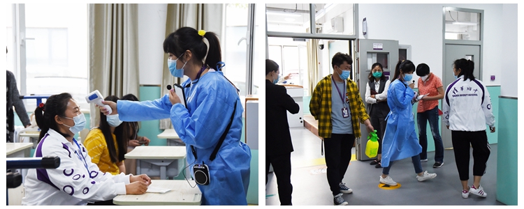 入校有序排队测量体温