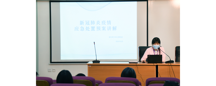 为做好6月1日返校复课的准备工作,5月25日上午9点30分,bg真人试玩奥森、将台路校区对非毕业年级教职工进行了防疫知识培训及应急演练。两校区同步进行讲座培训,执行校长朱建宏及将台路校区教职工在将台路校区阶梯教室召开现场会议,副校长张姝敏带领奥森校区教职工在奥森校区阶梯教室观看直播。随后,两校区分别进行应急演练。