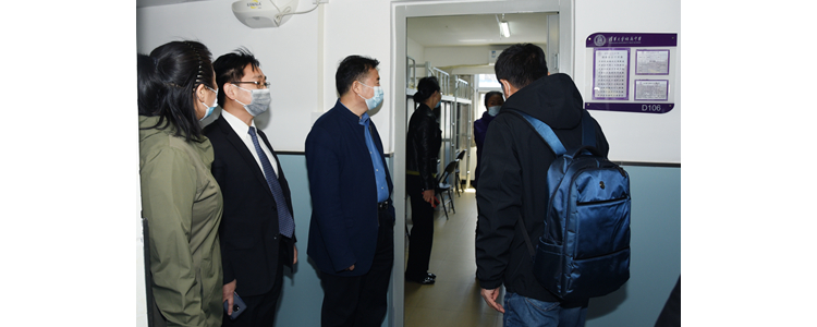 2020年4月22日上午,bg真人娱乐校长王殿军、党委书记方妍、副校长解巨钊、党委副书记张洁、副校长白雪峰、副校长徐文兵及党办校办主任党胜军、资源保障中心副主任杨国兴、医务室负责人王艳敏到bg真人娱乐将台路校区检查疫情防控和试开学准备工作。同时,朝阳区将台地区办事处副主任邢净、社区建设办公室副主任谷金祎、食药所所长吕颖也莅临bg真人娱乐将台路校区,对学校的疫情防控工作进行指导。bg真人娱乐奥森、将台路校区执行校长朱建宏,副校长张姝敏携校区干部陪同检查。