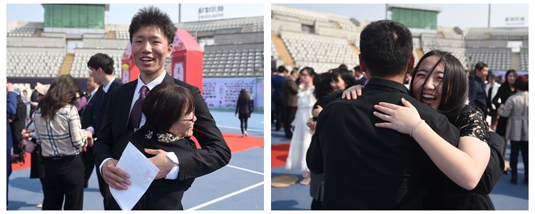 同学们跟着司仪读谢师词,面对台上含辛茹苦的老师,九十度深鞠躬三次,向老师们行礼,随后老师们也向学生们鞠躬回礼。