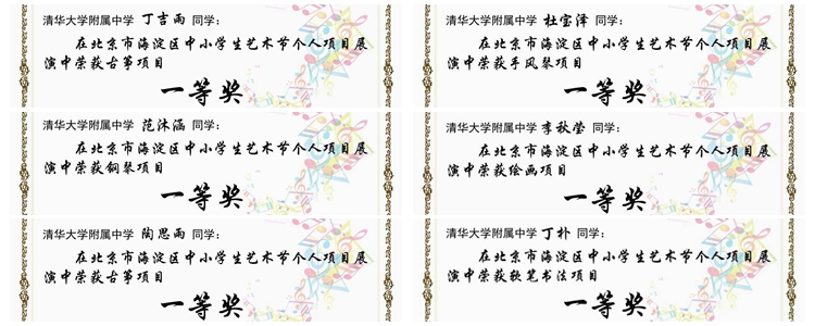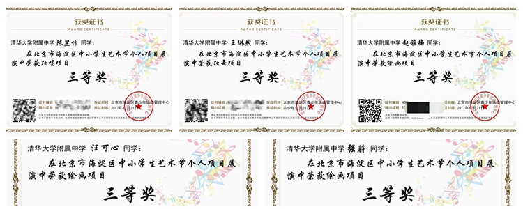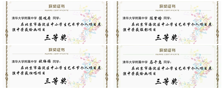 2017年12月22日,北京市海淀区中小学生艺术节个人项目展演成绩公布。bg真人娱乐奥森、将台路校区共19名学生在绘画、独奏、独唱、独舞、摄影、软笔书法等艺术项目中荣获多项荣誉,包括一等奖6名,二等奖5名,三等奖19名。