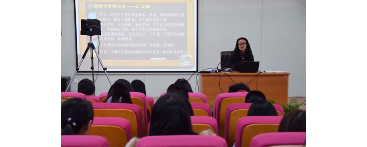张姝敏副校长分别为两校区班主任进行了题为“班主任常规工作及责任意识”的主题培训。从到校、升旗、集会、上课、课后、卫生、住宿生管理、班集体建设等方面详细讲了每一项工作细节,并且分享了很多有益经验,提供了落地方法。同时,向全体班主任教师提出了“诚心、眼疾、手快、口实、腿勤、耳灵、脑活”的责任意识要求。