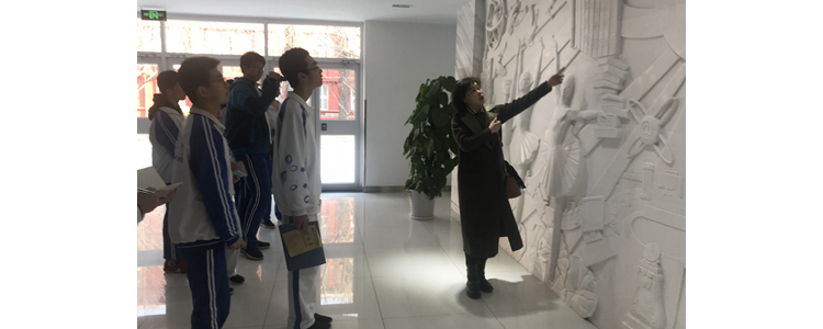 随后,朱建宏带领大家来到教学楼一层大厅欣赏《多彩校园》浮雕。创作者张舒女士为同学们讲述浮雕的创造元素与灵感。浮雕因材料取自汉白玉,材质触摸起来十分舒适,也使作品更加灵动。《多彩校园》刻画了bg真人娱乐学生们“德智体美劳”全面发展的画面,同时增加丰富的清华元素,如清华大学的二校门,荷塘、紫荆花和操场等,寓意学生们能够传承清华精神,成就完美人格。