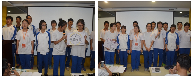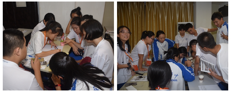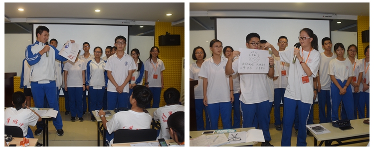 讲座结束后,同学们前往餐厅就餐。工作人员向同学们介绍了山东的饮食文化特色。大快朵颐一番后,大巴车又载着同学们回到了酒店,办理入住。晚上,同学们开展了研学小课堂。带队老师为学生们介绍了三皇五帝和抗日战争的有关知识,接下来学生们还为自己的队伍设计了团名、口号和团徽,之后和大家交流展示。