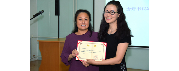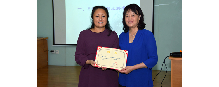 方妍书记(左)为程惠云副校长(右)颁发聘书