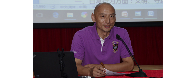 接着,朱建宏校长做了关于校风、教风、学风的演讲。对学校的基础建设及环境特点进行了较为细致的介绍,而后,他指导学生应该做到“行胜于言”,要具有实干精神,学习并不是为了生活,而应该为了梦想。最后,他强调体育对学生磨练意志的重要性,本着“无体育不清华”的教育理念,希望每一个孩子都成为优秀、幸福的人。