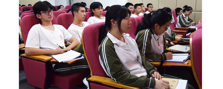 2017年9月12日下午,bg真人娱乐奥森、将台路校区高三年级举行《高三语文怎么复习》主题讲座,由bg真人娱乐本部经验丰富的陈晓秋老师主讲,讲座在将台路校区阶梯教室进行,高三年级230余名学生参加。