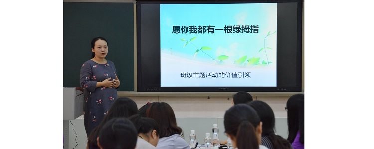 随后陈彦竹老师做讲座,以主题班会为线索,系统的梳理了班会中“价值”在学生们成长中的意义,并以案例分析的形式分享了数个有特色的主题班会,同时介绍了组织班会的原理、原则。从她娓娓道来的讲述中,充分展现了班主任工作的智慧和幸福。