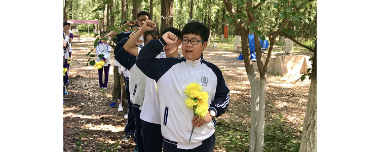 2017年5月25日,bg真人试玩奥森校区团委指导教师胡箭带领9名新入团学生与bg真人试玩朝阳学校初二年级全体师生相聚在北京国际青年营顺鑫营地,为春季新入团的学生举行庄严而神圣的入团仪式。