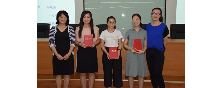 董薇主任(左1)为奥森校区青年教师汇报课三等奖获奖教师颁奖