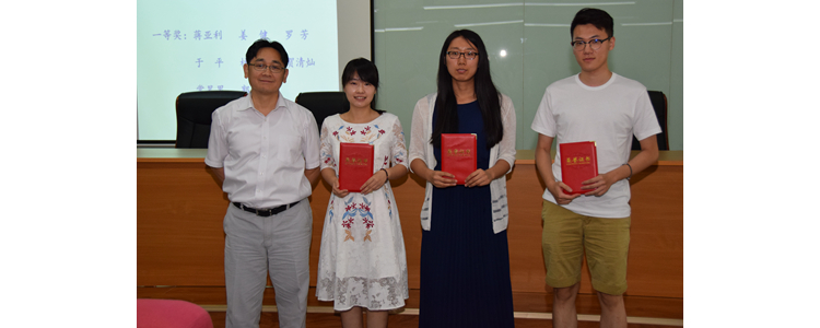 朱建宏校长(左1)为青年教师解题大赛一等奖获奖教师颁奖