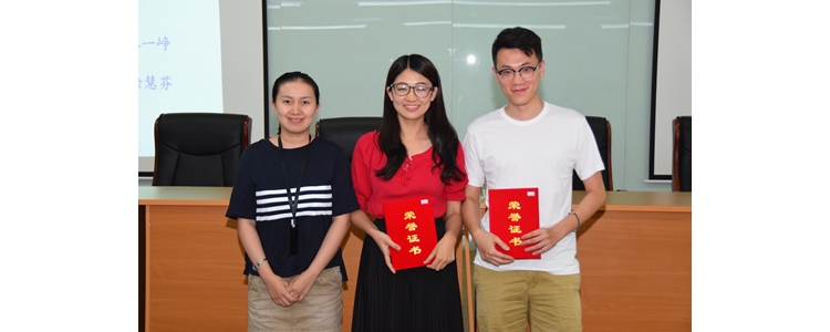 朱建宏校长(中)为奥森校区青年教师汇报课一等奖获奖教师颁奖