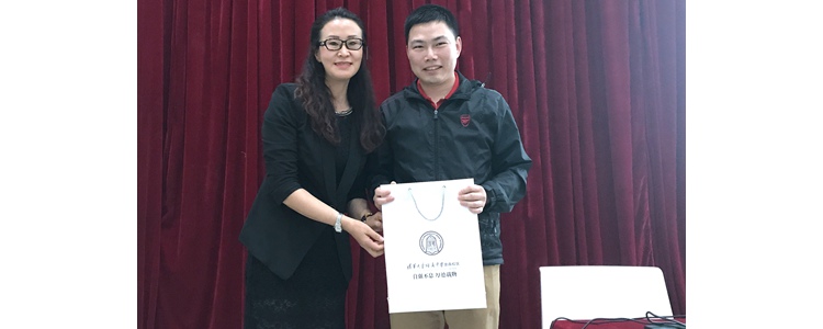 张姝敏副校长(左)向陈恒杰教员(右)赠送纪念品