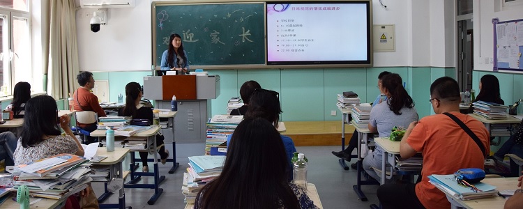全体大会后,班主任们在各班教室主持召开班级家长会,各班任课教师进班与家长交流学科教学情况,帮助家长了解学生的学习情况。