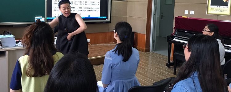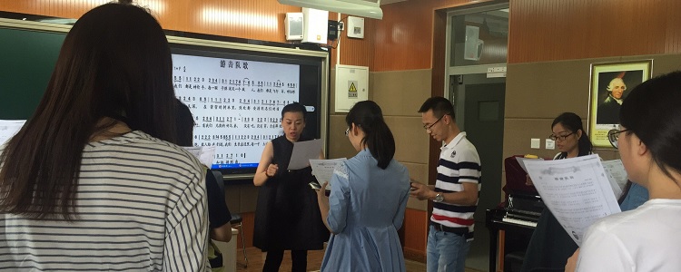 为认真贯彻“两学一做”,践行党的群众路线教育实践,丰富教师党员课余生活,2017年5月11日中午,bg真人娱乐奥森将台路支部10名教师党员在实验楼音乐教室举行了学唱红歌活动。