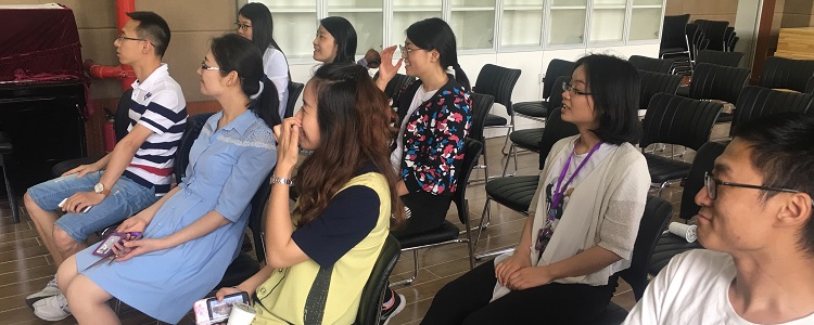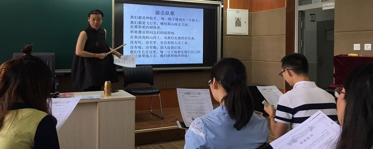 此次活动学校高度重视,党支部成员精心策划。首先历史许建华老师对红歌的发展历史进行了详细介绍,随后音乐蔡迎青老师带领大家学唱红歌。