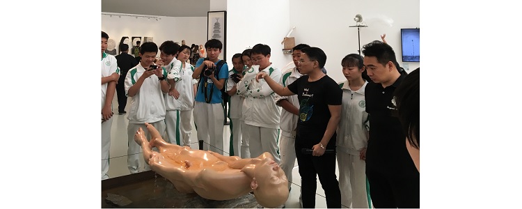 之后参观雕塑、实验艺术作品展区,作品跨度很大,开拓了学生的眼界,有写实具象的木雕作品,有实验性的装置作品,有新媒体影像作品等等。开放而多元的艺术表达形式下更多体现的是作品背后的积极思考,一种用作品传达的态度,让大家体会到艺术作品的内在实质。