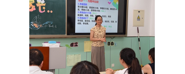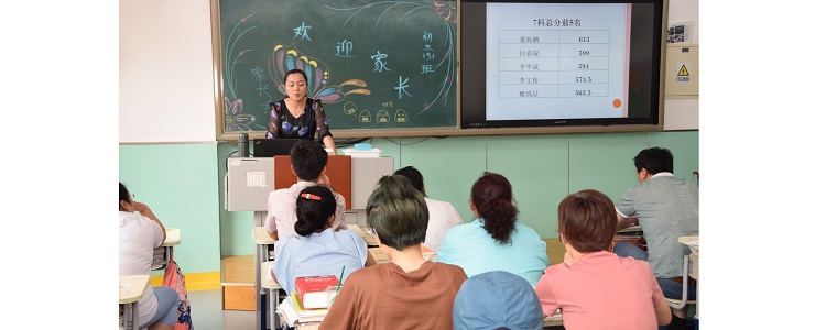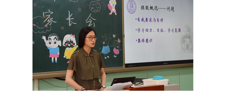 全年级家长大会结束后,家长进入到各班教室,由各班班主任和任课教师进行班级情况总结。