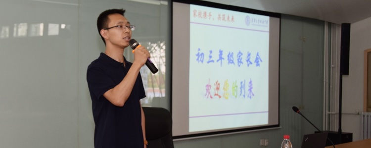 2017年5月21日下午,bg真人试玩将台路校区初三年级在阶梯教室召开家长会,200余位家长参加会议,会议由初三年级助理贺清灿老师主持,副校长程惠云出席会议并作报告。