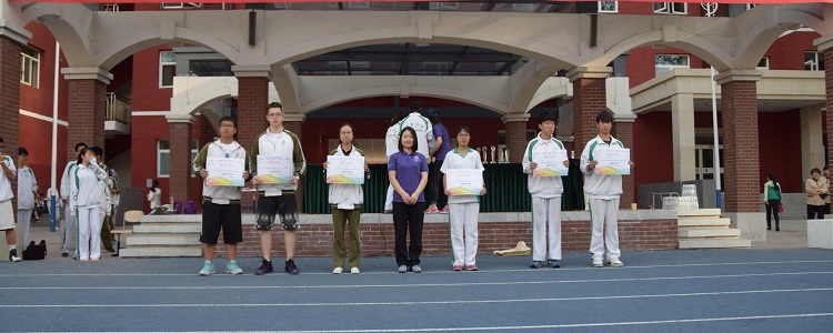 程玮琳副主任为初中组、高中组获得体育道德风尚奖的班级颁发奖状