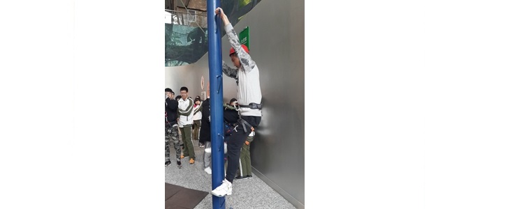 二队由高一(3)班和所有高二的33名学生组成,一天中体验了“偷天陷阱”和“高空勇士”两个课程。“偷天陷阱”是穿越激光网阵,锻炼了学生间的协作与沟通。“高空勇士”是需要学生们在安全保护下,攀爬到10米高处进行跳跃,突破自我与战胜自我的同时,缓解压力。很多有恐高症的学生都突破了自我,完美地完成任务。