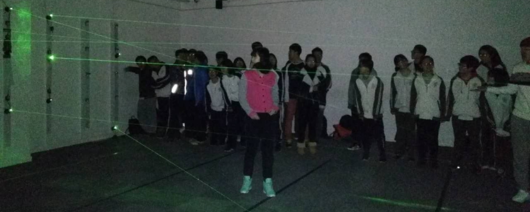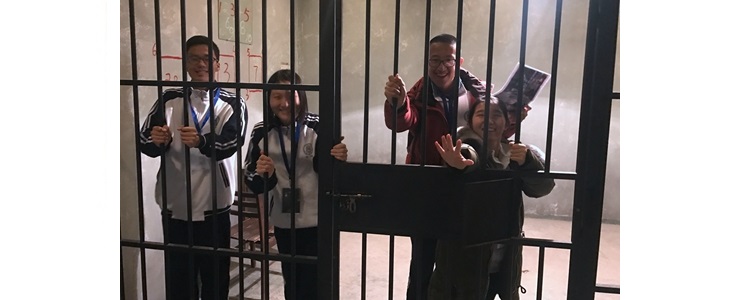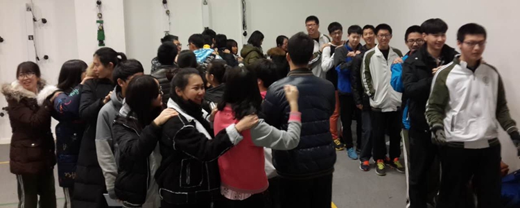 全部学生分为两队分别在一天内进行不同的项目。一队由高一(1)班和高一(2)班的34名学生组成,一天中体验了“风暴雷阵”和“团队越狱”两个课程。“风暴雷阵”是通过学生们的共同努力,在不违反规则的情况下,从由120个数字组成的雷区中通过,这个项目能够增进学生间的沟通和协助能力,打破惯性思维,培养创新意识。在进行这个项目时,我们的学生差点创下这个项目的记录,但因为协作中出现问题而拖延了1分钟,由此学生们也感受到了放弃自我的合作力量。“团队越狱”是将学生按小组进入隔绝的牢房内,在规定时间里,团队成员必须根据提示和逻辑推理一步步完成指定任务而完成越狱。学生在活动中感受到沟通的重要性和朋友之间的信任。