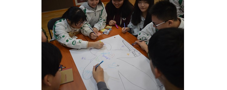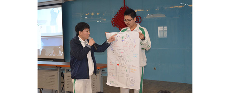 中国教育学会中学生领导力培养项目组成员刘明毅老师应邀做培训。首先通过“捉蜻蜓”和“互相了解”两个游戏,调节现场气氛,调动大家参与的积极性,锻炼学生们的沟通能力。而后刘老师提出关键词——“领导力”,让学生干部讨论并用彩笔画出自己心目中一个领导者需要具备的能力。大家灵活运用手中的彩笔,用色彩描绘出自己心目中的领导者。学生们积极踊跃上台分享自己的想法,对于领导力讲解也非常有趣,大家表示收获的不仅是喜悦,更是对“领导力”有了深层次的见解。