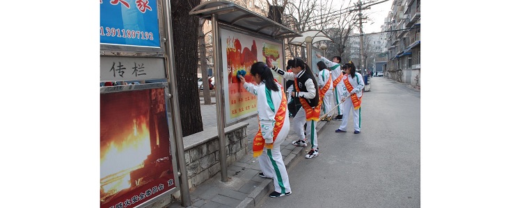 3月3日下午,学生们到达芳园里社区,首先由社区刘主任为活动致辞,表达对我校区的感谢以及对未来合作的期待。在经过简单分工和领取清扫工具后,大家就干劲十足地开始打扫卫生。在打扫过程中,学生们认真擦拭宣传栏、拾白色垃圾,表现出不怕苦不怕累的奉献精神。