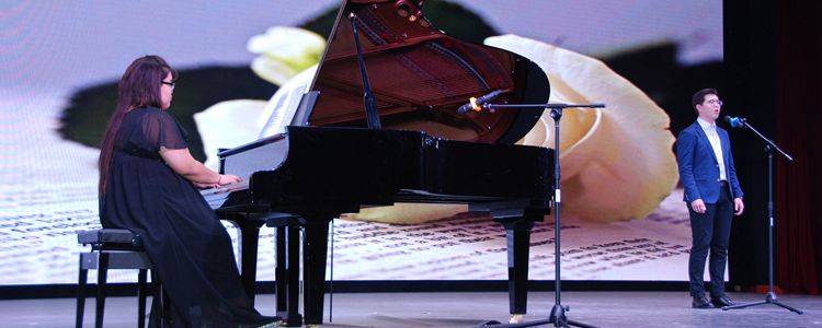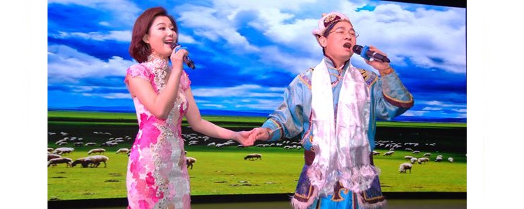 朱建宏校长(右)和王籽晴老师(左)深情演绎《呼伦贝尔大草原》