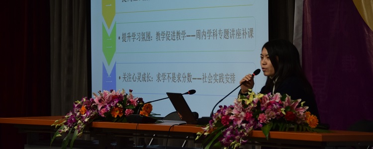 紧接着,程惠云副校长从教师培养、目前的困难、所需的帮助三个方面作了系统的报告。程校长表示,在年轻教师的培养方面,学校做了全方位的工作,聘请了许多特级教师进班听课并对老师进行指导,以促进年轻老师的快速成长。针对学校住宿生较多的客观情况,程校长希望各位家长能够做好表率积极配合学校管理,共同引导孩子遵守学校纪律,以达到健康快乐成长之目的。最后,初三年级助理贺清灿老师从校园生活、课程设置、期中考试、工作计划等几个方面对初三年级的整体情况做了讲解。