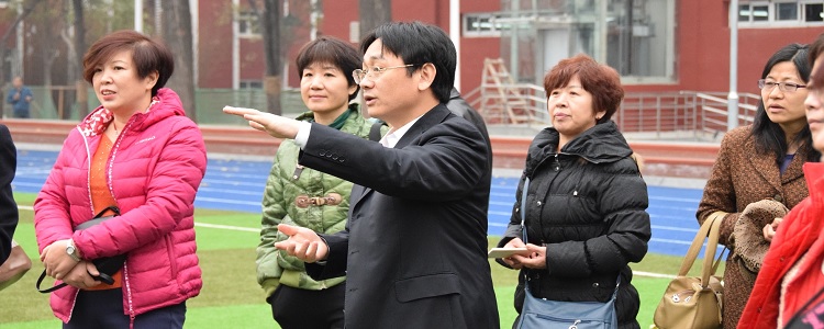 朱建宏校长(左3)带领家委会成员参观校园