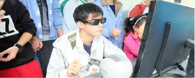 学生们体验虚拟现实技术