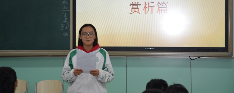 接下来的情景剧环节把活动推向了一个小小的高潮。同学们根据原著,选择书中双水村响应号召,各村都选阶级敌人进行批斗,双水村孙玉亭和金俊山选择村里的傻子田二当批斗对象的情节,由王童玉同学总策划,编排成情景剧。同学们在台上精彩的表演,把书中开展批评会的情节演绎得淋漓尽致。