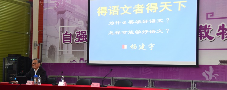 此次讲座的主题为“得语文者得天下”。杨老师首先给同学们解读了“得语文者得天下”的含义,根据亲身经历,证明语文学习是其他学科很重要的基础;然后,通过列举、分析2016年北京语文高考题目,使同学们体会到了语文之“大”,并进一步指出,语文的特点是“人文性与工具性”的统一,语文学习往往涉及日常生活中的交流表达。最后,杨老师提出了很多宝贵的学习方法,包括制定科学的学习计划,养成良好的学习习惯;大量阅读,增长知识量;积极参加社会实践,读万卷书的同时行万里路等。