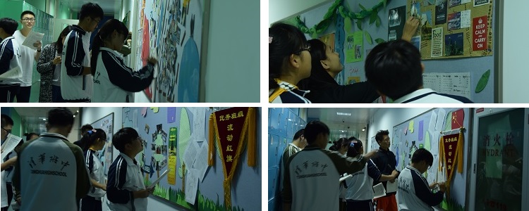 此次bg真人试玩奥森校区班级文化建设评比是2016-2017学年第一次评比,由学生发展中心的老师带领各班学生代表,在高一、高二年级各班进行。分别对班级环境布置、班级管理和特色文化建设等方面进行评比,其中包括座位摆列、物品摆放、表格安排、个人仪表以及班级后墙和外墙的设计。本期班级文化以爱国、爱校、爱班为主题,旨在调动学生学习实践兴趣,启迪学生思想,陶冶学生情操,弘扬学生道德,培养学生的主人翁精神,塑造积极向上的班级精神,促进学生健康成长。参与评分的老师和学生们认真对每一项要求进行检查核对,最后成绩由70%教师评分与30%学生评分进行加和得出。