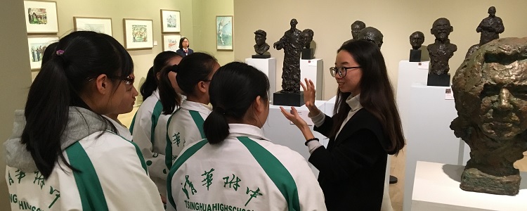 2016年10月28日下午,bg真人娱乐将台路校区组织初三年级学生开展艺术特色系列课程——感受文化积淀之走进中国美术馆。活动由美术老师带队,班主任及德育教师协助,清华大学研究生助教负责专业讲解,初三年级200余名学生参加了此次艺术实践活动。