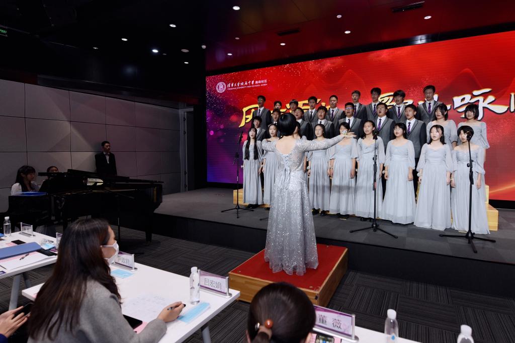 学生合唱结束后,张毅老师为各班的表演做专业点评,张老师在肯定大家表演效果的基础上,鼓励同学们继续努力,用艺术陶冶情操。