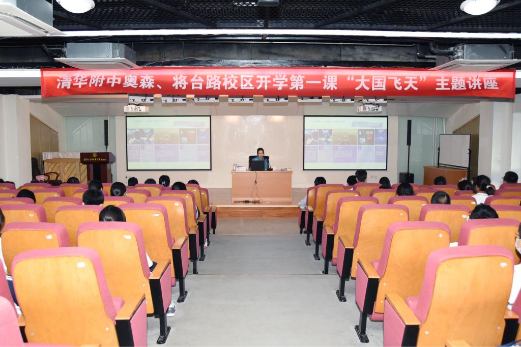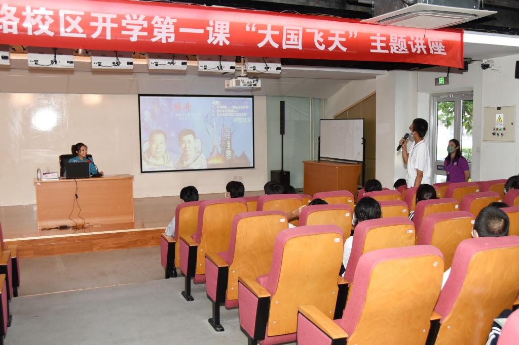 2022年9月1日,bg真人试玩奥森、将台路校区举办《大国飞天》主题讲座,特邀历任中国航天员中心航天员教员王一担任主讲人,为两校区新生科普我国载人航天工程的知识,展现中国飞天梦的光辉历史。将台路校区阶梯教室为主会场,奥森校区师生通过观看直播同步参与。bg真人试玩奥森、将台路校区执行校长朱建宏、家委会主席团7位家长代表出席讲座现场。