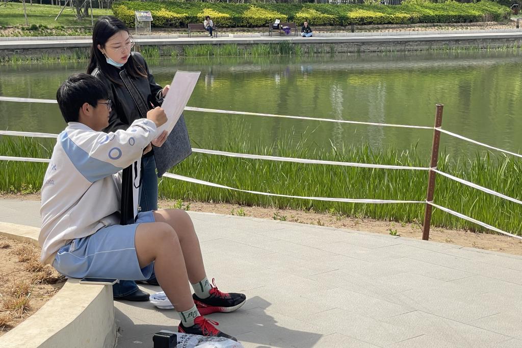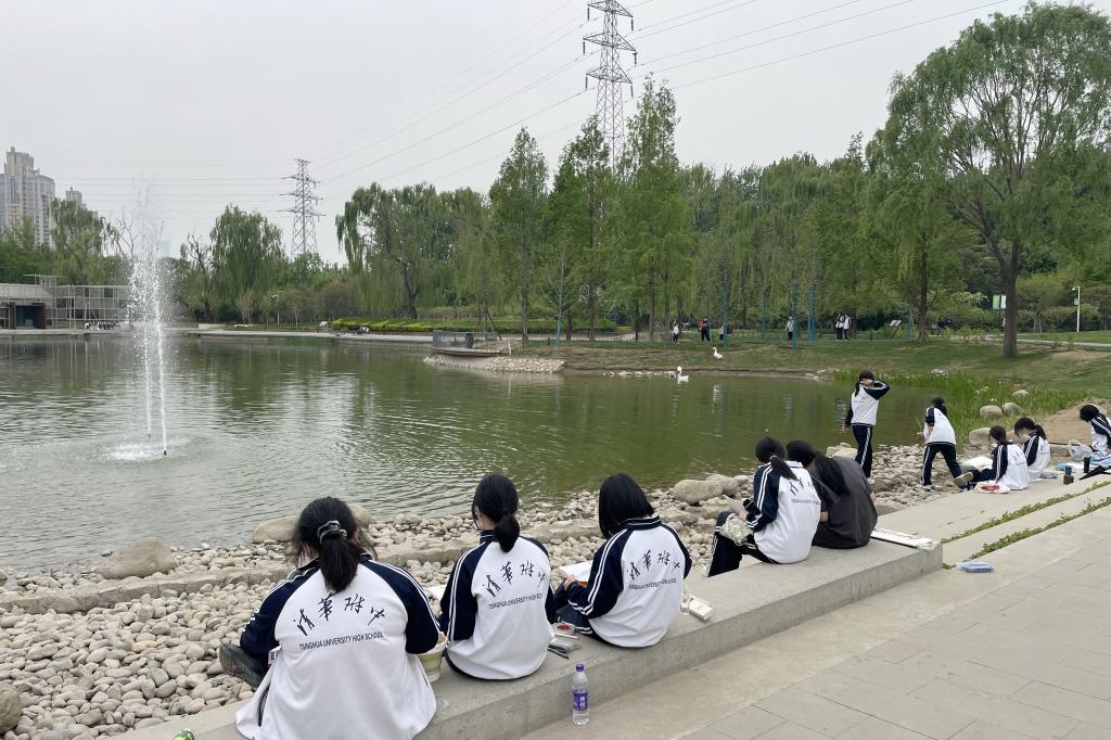 四得公园毗邻将台路校区,鸟语花香、水草丰美,是城市喧嚣中一片难得的休养身心之地。初三年级和高一年级的美术生们在公园中尽情享受着大自然的美好,并在老师的指导下,实地练习室外取景构图的方法,倾情投入观察描绘,在一张张画纸上渐渐勾勒出尽管稚拙、但却真诚的大自然的模样。