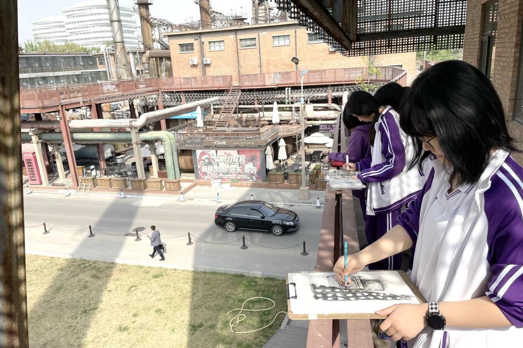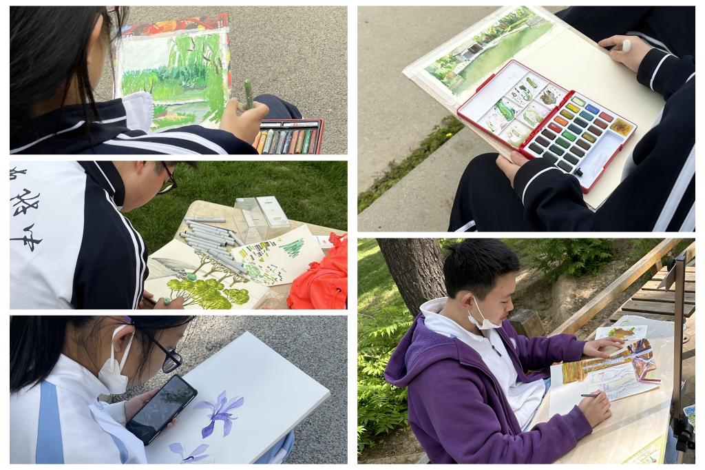 人间最美四月天,不负春光与时行!迎着四月下旬午后的阳光,bg真人娱乐将台路校区初三至高二年级美术班全体师生把美术课堂搬进了室外的公园里,分别前往四得公园和798艺术区进行现场写生。学生们用眼睛捕捉美好、用心观察自然韵律,运用手中的画笔,尽情描绘起这个可爱的世界。