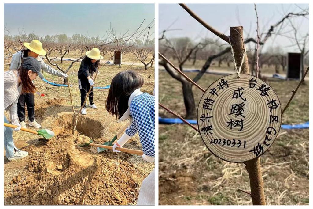 紧接着,领队老师带领学生们进行农事体验,学生们亲身体验翻地起垄、撒种施肥和草莓种植等实践活动,感受收获成果的不易。高一年级教师共同种下一棵桃树(取名成蹊),旨在希望学生们未来的学习和生活道路上一步一个脚印脚踏实地,也寓意着教师们将在育人的道路上不断前进!